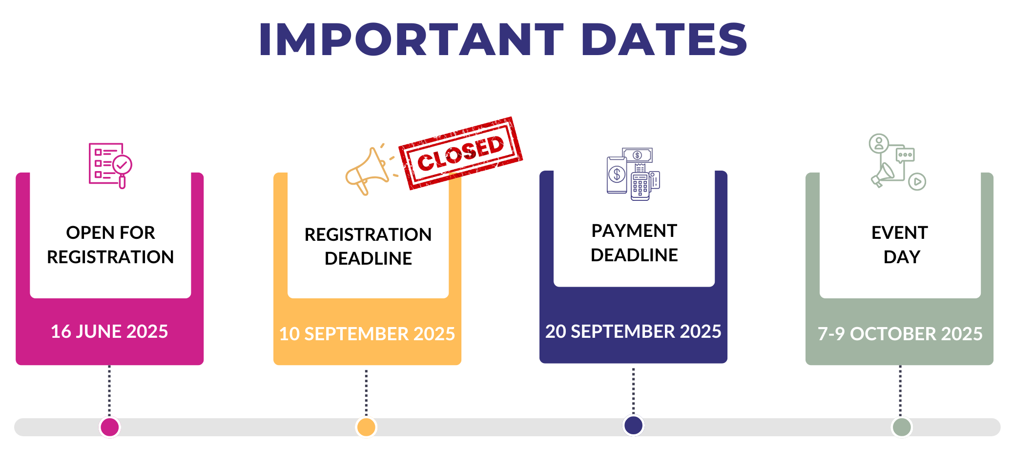 You will be given poster number and poster session during REGISTRATION (please refer to event Schedule).